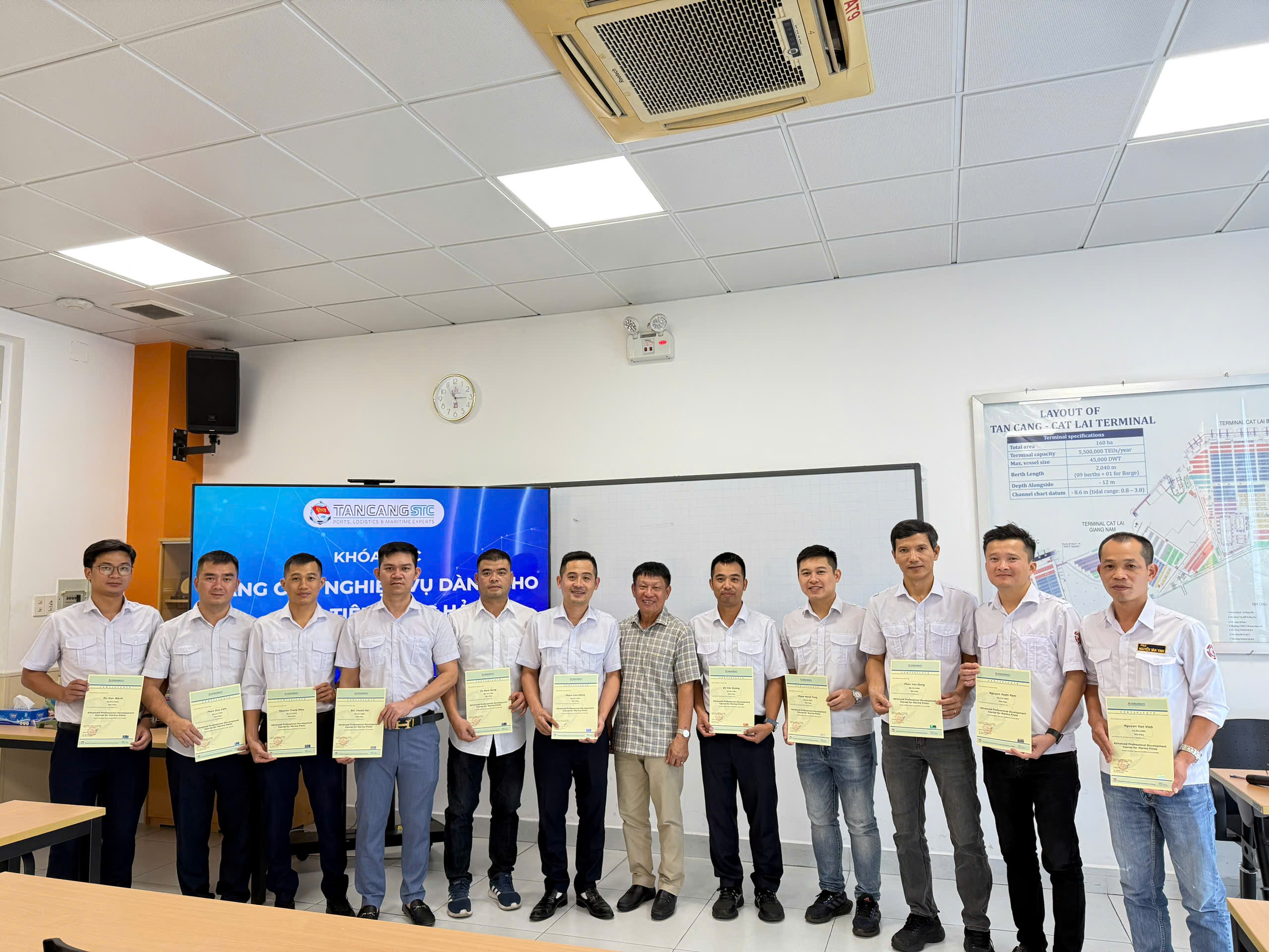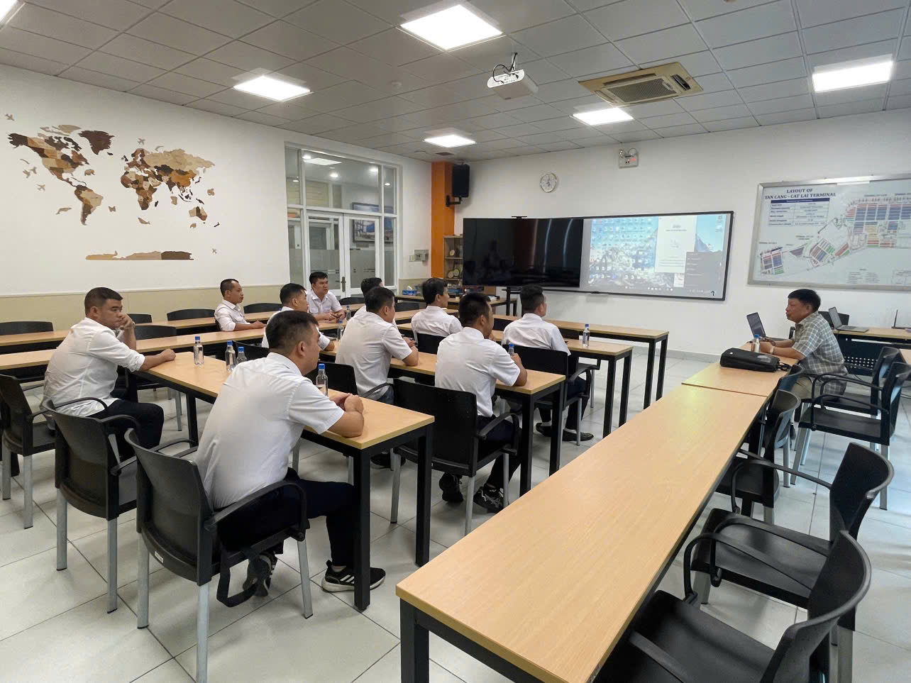 Từ ngày 21/10-31/10/2025, Công ty cổ phần Hoa tiêu Hàng hải-TKV có kế hoạch cử 21 hoa tiêu viên chia làm 02 đoàn tham gia khóa học nâng cao nghiệp vụ Hoa tiêu dẫn tàu tại phòng học Công ty TNHH phát triển nguồn nhân lực Tân Cảng – STC, phường Cát Lái, Tp Hồ Chí Minh. Đoàn 01 đã kết thúc khóa học vào ngày 24/10/2025.