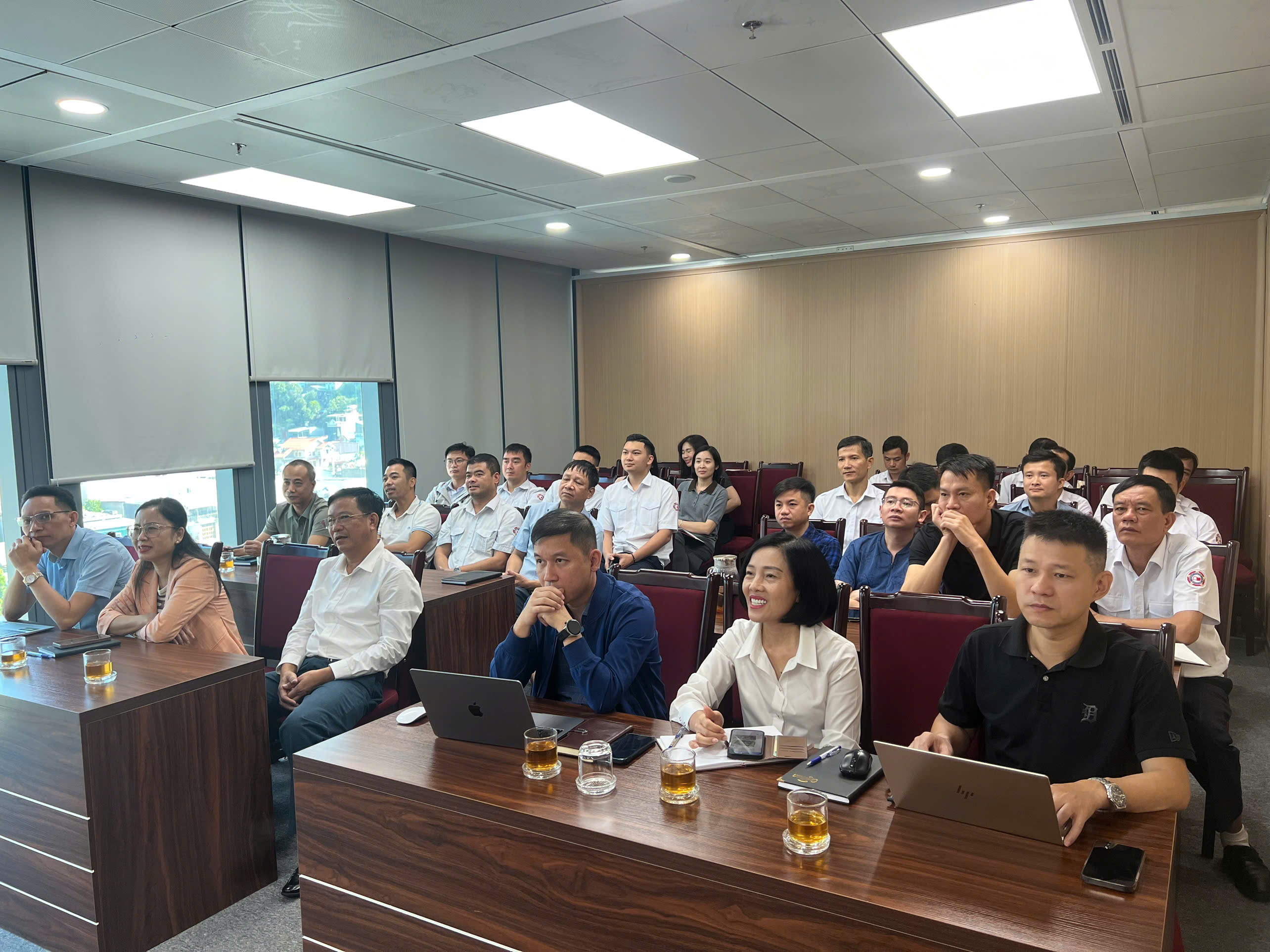 Trong phần thực hành, các cán bộ và hoa tiêu được hướng dẫn trực tiếp trên hệ thống nhằm làm quen với quy trình làm việc mới. Các tình huống thực tế được mô phỏng để người tham dự thực hiện các bước nhập liệu, cập nhật thông tin dẫn tàu và trích xuất báo cáo theo đúng chức năng được phân cấp. Các thắc mắc phát sinh đều được chuyên gia giải đáp cụ thể, đảm bảo người sử dụng nắm vững các thao tác cần thiết khi triển khai chính thức.