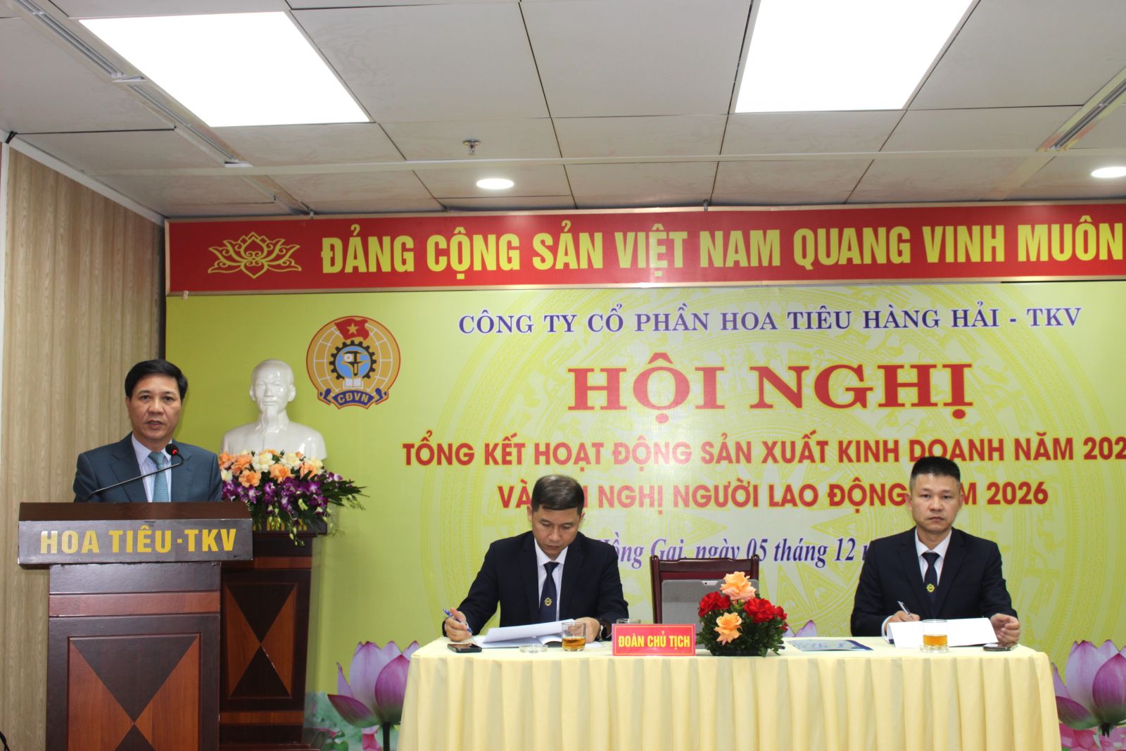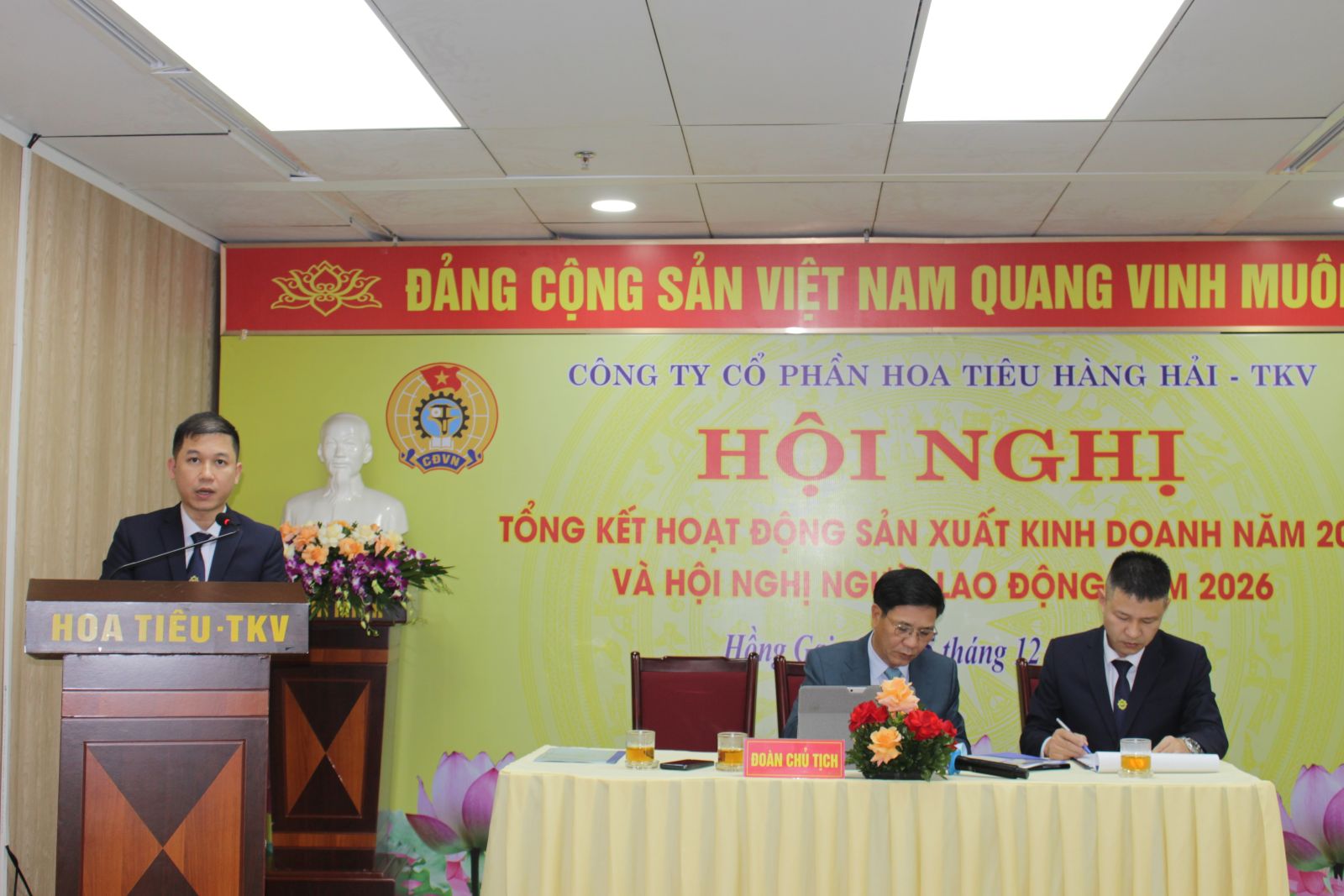 Báo cáo kết quả SXKD và thực hiện Nghị quyết Hội nghị người lao động năm 2025, Giám đốc Công ty Phạm Tuấn Phong cho biết, năm 2025 sản lượng dẫn tầu dự kiến đạt trên 3.060 lượt, bằng 102,2% KH năm và bằng 106,6% cùng kỳ; doanh thu đạt 66,2 tỷ đồng, bằng 130,9% KH năm, bằng 120,1% cùng kỳ. So với kế hoạch tăng trưởng TKV giao, doanh thu vượt 19%; các chỉ tiêu lợi nhuận, tiền lương của người lao động đều tăng so với kế hoạch và tăng trưởng so với 2024. Công tác dẫn tàu đảm bảo an toàn,  kịp thời, hiệu quả, đảm bảo an toàn hàng hải, môi trường.