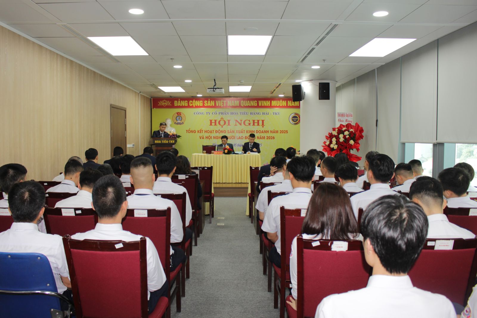 Chiều ngày 5/12, Công ty CP Hoa tiêu Hàng hải - TKV tổ chức Hội nghị tổng kết hoạt động sản xuất, kinh doanh năm 2025 và Hội nghị người lao động năm 2026. Dự hội nghị có các đồng chí: Lê Quang Dũng, Thành viên HĐTV Tập đoàn; Phạm Hồng Hạnh, Phó Chủ tịch Thường trực Công đoàn TKV; Hoàng Trọng Hiệp, Uỷ viên Ban thường vụ, Chủ nhiệm UBKT Đảng ủy TQN; Ban kiểm soát, Ban VTM, KDT TKV; lãnh đạo Công ty và 65 CB, CN, NLĐ...