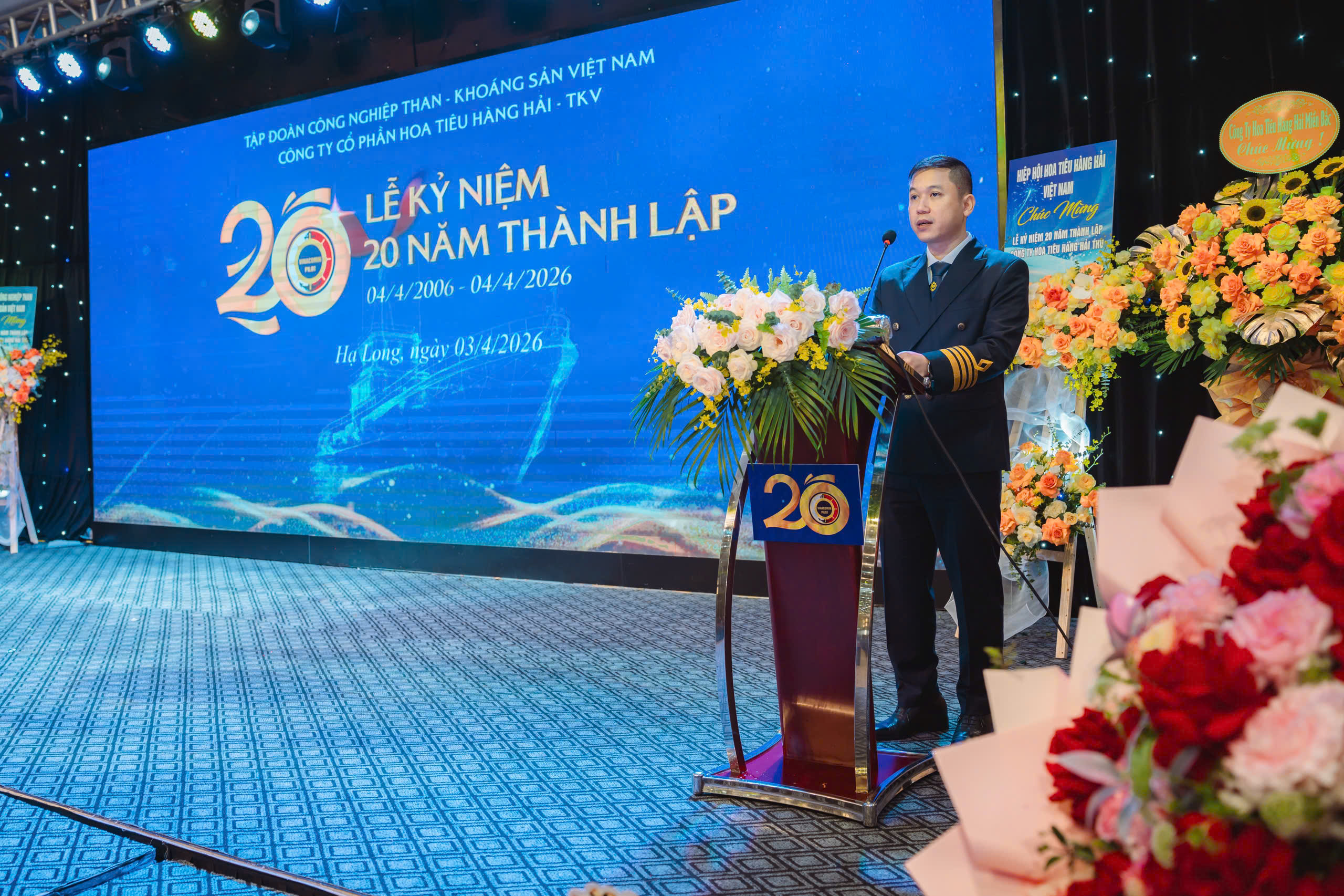 Phát biểu tại Lễ kỷ niệm, Bí thư Đảng ủy, Giám đốc Công ty Phạm Tuấn Phong ôn lại truyền thống 20 năm xây dựng và phát triển. Công ty Cổ phần Hoa tiêu Hàng hải -TKV được thành lập với nhiệm vụ chính là cung cấp cấp dịch vụ hoa tiêu hàng hải cho các tàu biển nước ngoài và Việt Nam ra, vào vùng nước Cảng Cẩm Phả, giải quyết kịp thời, nhanh chóng, an toàn và hiệu quả đáp ứng cho quá trình sản xuất, công tác xuất, nhập khẩu than của Tập đoàn TKV.